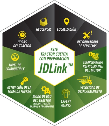 JDLink™ es la tecnología de John Deere que le permite gestionar en tiempo real el funcionamiento de su tractor desde su computadora, tablet o celular que le permitirán aumentar la productividad y el tiempo de operación, además de reducir costos.